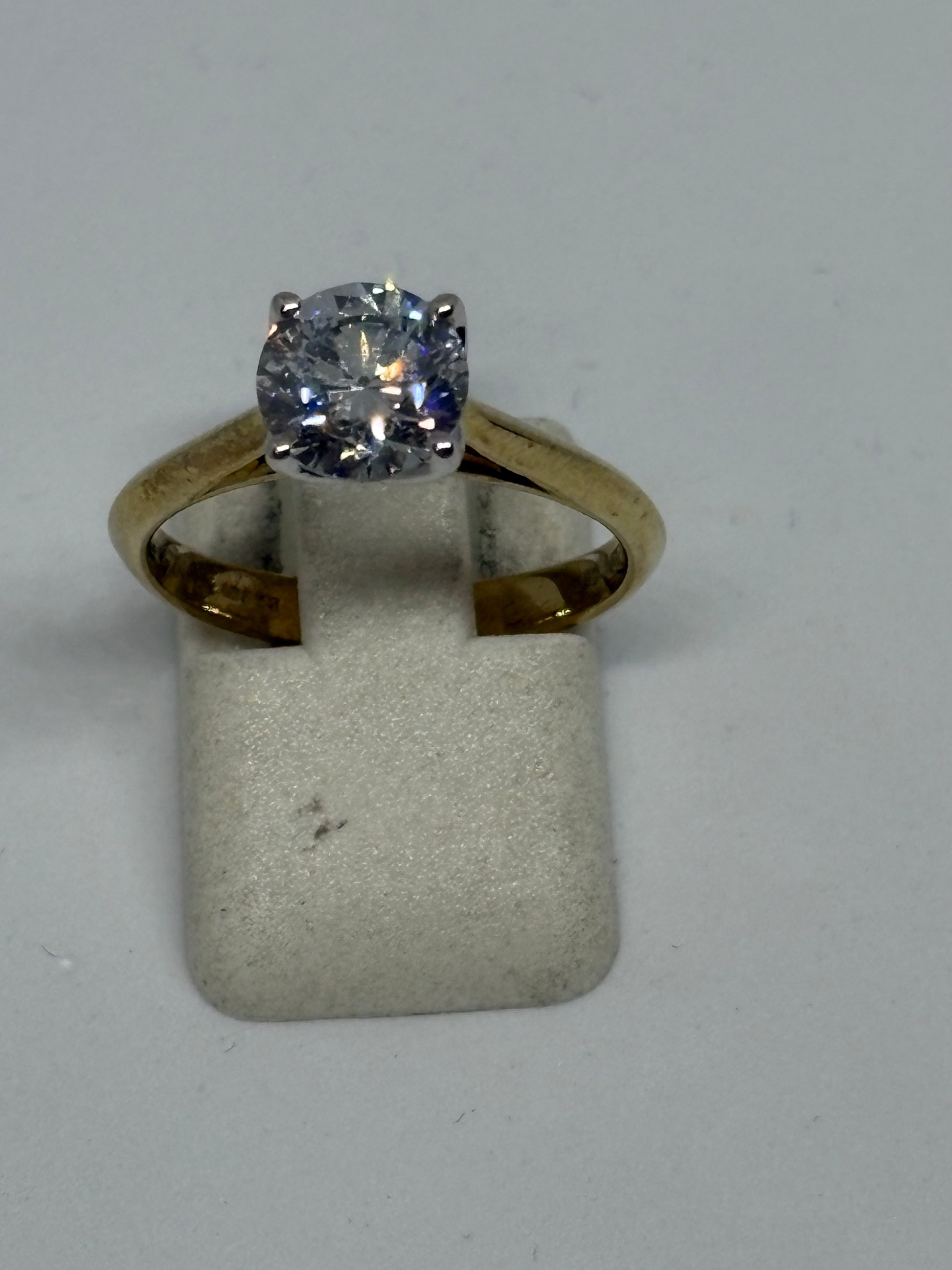 Lotus style setting lab grown diamond in yellow gold, 2ct round.